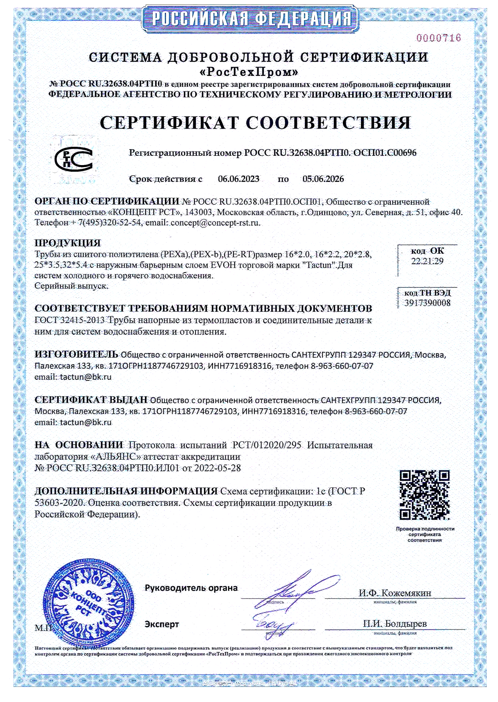 Труба TACTUN PEX-a/EVOH для водоснабжения и отопления/теплого пола 16 х 2,2 ( 200м. )